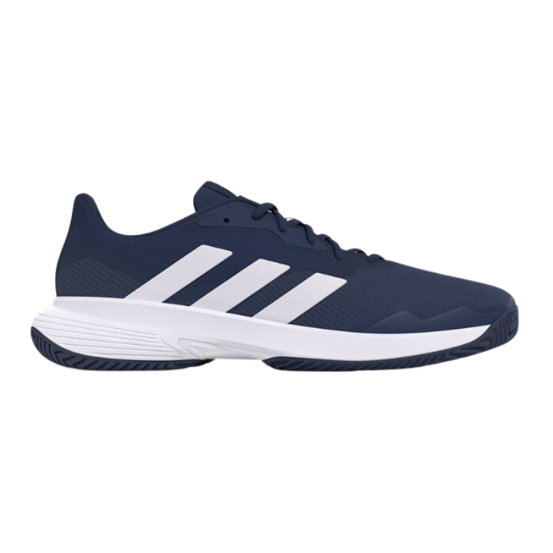 Tävling i all ära. Men det är dominans som räknas. Tennisskorna Courtjam Control från adidas har en ovandel i mesh och en flexibel mellansula med Bounce som håller dig bekväm när du sätter press på motståndaren. Mellanfotsstödet i TPU och den greppande Adiwear-yttersulan för hårda underlag ger stabilitet i glidningar och sidorörelser. Dolda snören på fotens insida och zoner med extra slitstyrka specifikt konfigurerade för herrspel hjälper de här skorna att klara alla utmaningar.