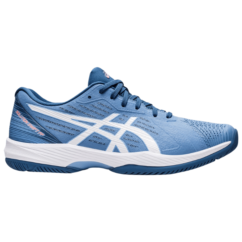 Köp en riktigt prisvärd tennissko som passar lika bra för hala padelbanor som för grusbanan för tennisspelare. Asics Solution Swifft FF är en ny riktigt välarbetad sko ifrån Asics som bara fortsätter att leverera högkvalitativa tennisskor och <a href="https://nordicpadel.com/sv/product-category/padelskor/”>padelskor. Skorna är utrustade med bra dämpning både fram till och baktill,dessutom använder Asics Flytefoam som är ett lågviktsmaterial som står emot tuff påfrestning. Twistruss teknologin i mellandelen av skon ger dig den stabilitet som en bra tennissko och padelsko skall ha. Passar till grusbanor för tennis eller hala padelbanor-fiskbensmönstrad undersula ger dig maximalt med grepp mot underlaget. Solution Swift FF är verkligen en sko som kommit för att stanna. Färg: Blå