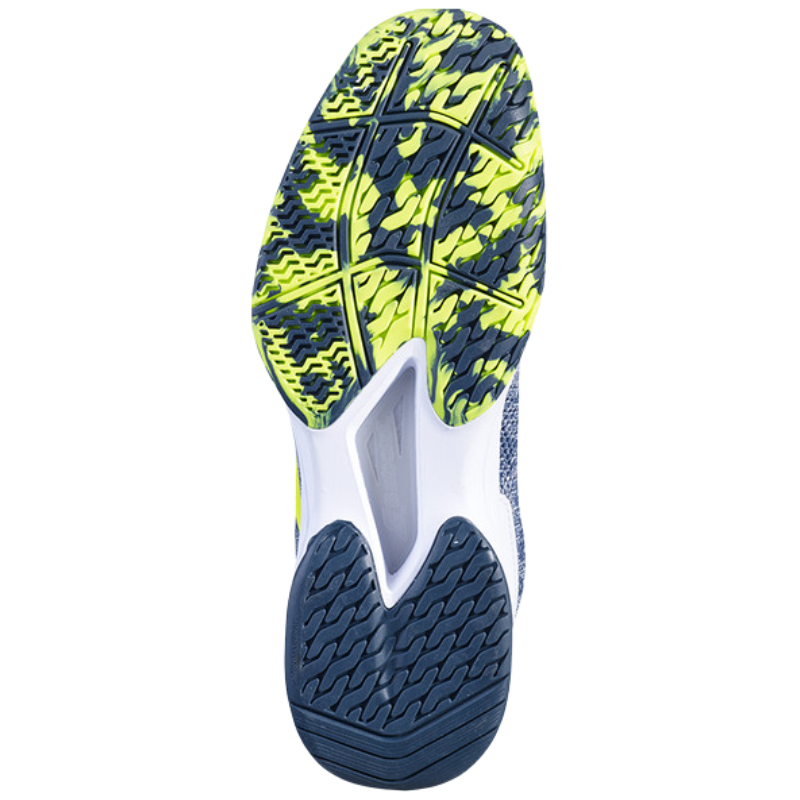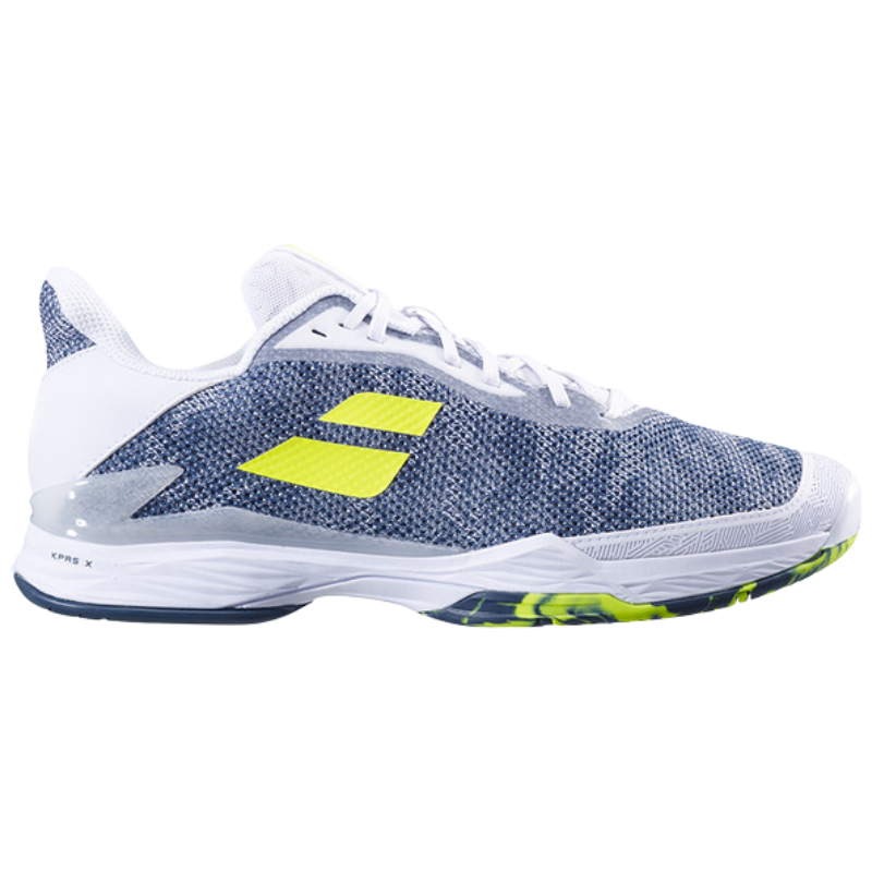 Jet Tere har snabbt blivit en storsäljare. Här får du en otroligt lätt tennis/padelsko med riktigt fin smidighet så att ditt fotarbete inte sinkas ner. Skons ovansida är tillverkad i ett stycke som aktivt ger stöd åt foten samtidigt som det är lätt och andas bra. Active Flexion-teknologin är Babolats patenterade undersula som är uppdaterad i 9 delar. Tack vare detta flexar sulan mer och större del av sulan har kontakt med marken. Ditt fäste blir bättre och förflyttningarna snabbare. Hälpartiet är ordentligt dämpat tack vare Babolats egenutvecklade KPRS-X dämpningssystem. Hårda stötar som uppstår under spel minimeras och ger en utökad komfort. Sulan är tillverkad av vår samarbetspartner Michelin, experter på däck och gummitillverkning, som garanterar en hållbar sula med perfekt grepp. Detta är även den modell som Juan Lebron har använt på WPT.