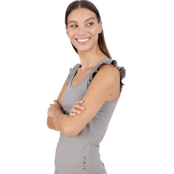 Riktigt fin topp i funktionsmaterial ifrån Bow19. Liv linne är toppen av din dröm med lite volang och nu i spets funktionsmaterial i ryggen som gör denna topp unik. En mjuk och stilren topp som är vacker på banan och till dina favoritjeans eller kjol. Funktioner: – Rörligt funktionsmaterial som absorberas lätt Perfekt för padel, golf, tennis, vardagsbruk Modellens längd: 175 cm Modellstorlek: storlek S Passform: vanlig Färg: Cinder