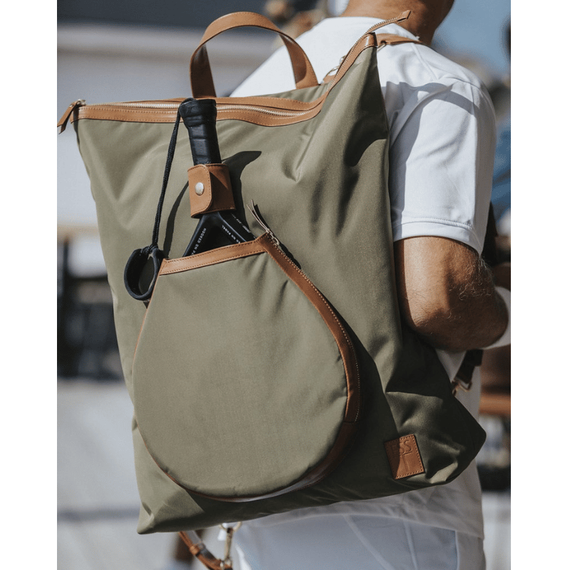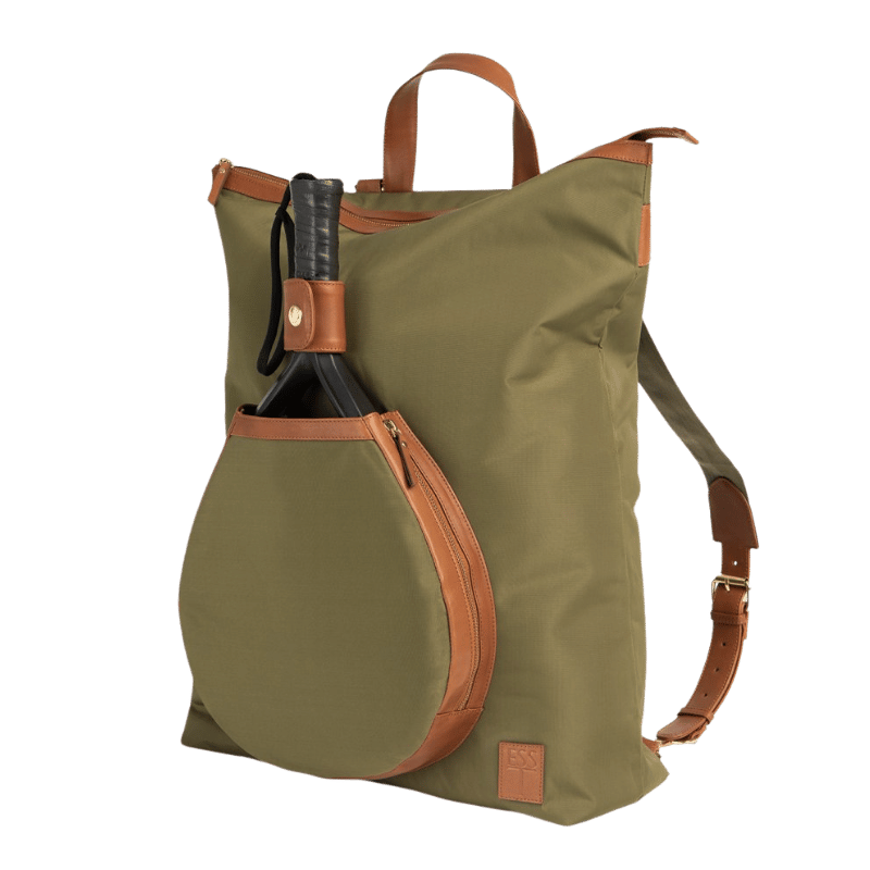ESS Tennis Padel Backpack är tillverkad av återvunnen polyester av cordura-typ och högkvalitativt vegetabiliskt garvat läder. Väskan rummer all din padelutrustning, ombyteskläder och toalettartiklar. Det inre laptopfacket passar de flesta 15″-modeller och väskan är även utrustad med en rymlig innerficka för mobil, plånbok och nycklar. Således tillåter väskan dig att bära alla dina värdefulla förnödenheter säkert och sorterat oavsett om du är på jobbet, på resande fot eller på padelbanan.