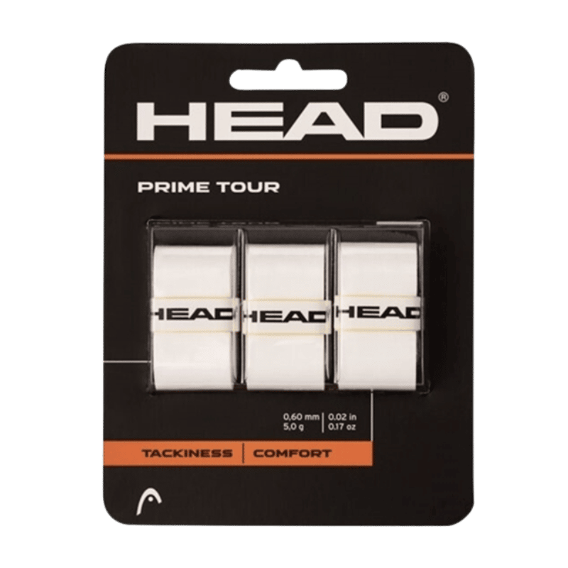 Köp Head Prime Tour – grepplinda för padelracketar och tennisracketar. Ny grepplinda ifrån Head med en hög klibbighet och bra absorberingsförmåga. Storlek: Levereras i 3-pack Färg: Vit Tjocklek: 0.6 mm