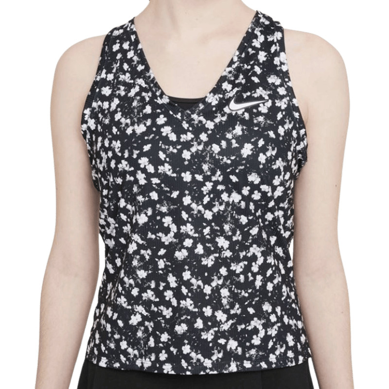 Mönstrat linne för tennistjejer/damer och padeltjejer/damer. Rolig design i kombination med hög kvalite på materialet. Materialet är fuktavvisande och har en skön mjuk känsla för bästa komfort. Designen består av ett blommigt mönster över hela linnet och gör att linnet sticker ut jämfört med många andra enfärgade linnen.