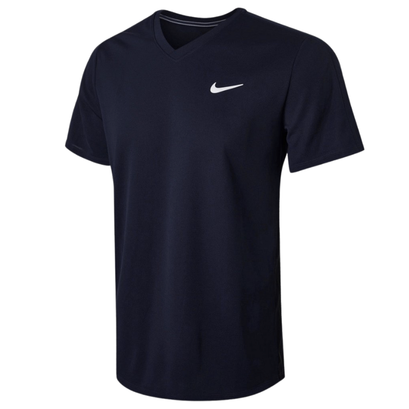 Köp en marinblå Nike Victory top för herrar. Tenniskläder/Padelkläder tillverkade i 100% återvunnen polyester. Toppen är v-ringad och har en lätt stretch i materialet vilket åstadkommer en mycket bättre passform jämfört med mindre välarbetade överdelar. I detta fuktavstötande plagg kan du röra dig lätt och smidigt över banan. Nike-Swoosh på vänster bröst. Färg: Marinblå Material: 100% Återvunnen Polyester Tvättråd: Maskintvätt, 40 grader syntet