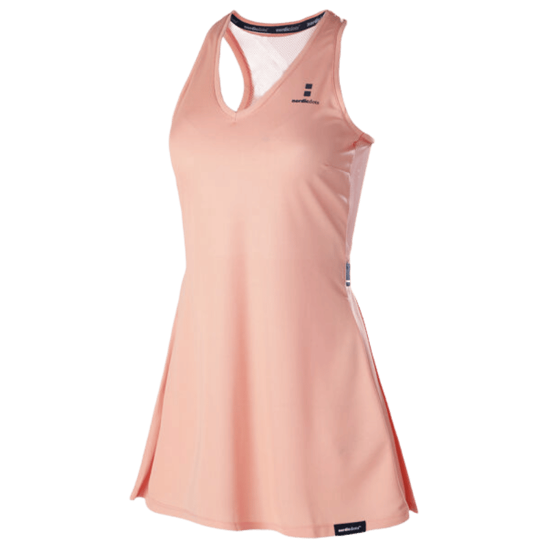 V-ringad klänning med en luftig rygg som ger dig maximalt med luftgenomströmning för att behålla en torr känsla på banan. Klänningen har en veckad nederdel som ger en extra krydda designmässigt. Sist men inte minst gör ett klimatsmart val när du handlar tenniskläder och padelkläder.