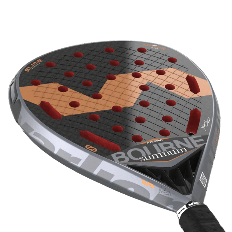 Varlion Bourne Summum Prisma Airflow S är det senaste racket i Bourne-familjen och just denna modell är Mike Yanguas alldeles egna racket. Formen är således en mix av diamant och dropp, den optimala formen för spelare som vill få ut maximalt med fart men som samtidigt vill ha de mer förlåtande egenskaperna av ett droppformat racket.