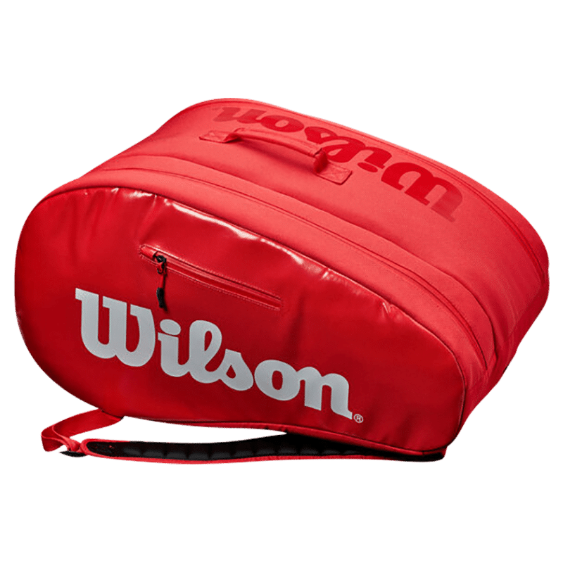 Välarbetad padelväska i Wilsons klassiska färger rött och vitt. padelväskan har separat fack för skor, ett separat fack för racketar vilket är thermomaterial i för bättre förvaring utav dina padelrack. Samt ett stort fack för övrig padelutrustning så som kläder med mera. Det finnsäven ett par accesoarfack där du smidigt kan förvara dina värdesaker. Helt enkelt en padelväska som har alllt man kan behöva. Väskan har dubbla vadderade axelremmar och kan där med bäras antingen som en ryggsäck eller som en vanlig väska. Färg: röd med vita detaljer Storlek: 28 x 38.5 x 55 cm
