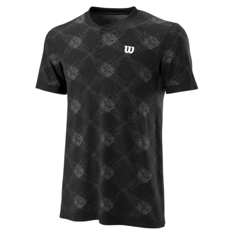 Köp en snygg överdel i funktionsmaterial och med härlig design. Detta plagg passar perfekt på tennisbanan eller padelbanan och ger ett stiligare intryck med knappar i halsen. Mönstrad design ger den ett lyft jämfört med många andra helfärgade plagg. Eftersom tröjan är tillverkad i funktionsmaterial är den specifikt anpassad för att aborbera bort svett så du håller dig torr på banan. Färg: Svart Material: 67% Polyester, 31% Polyamid, 2% Elastan Tvättråd: Maskintvätt, 40 grader syntet